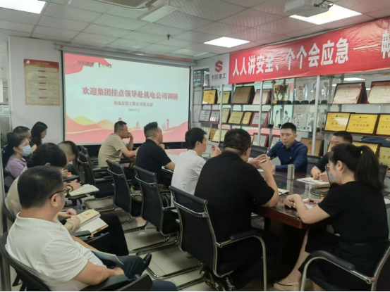 宣讲后,李营对机电公司进行调研,详细了解了生产经营、项目进展、安全管理、质量管控、信访维稳等工作情况,并就项目工作中的难点及解决措施进行研讨交流。