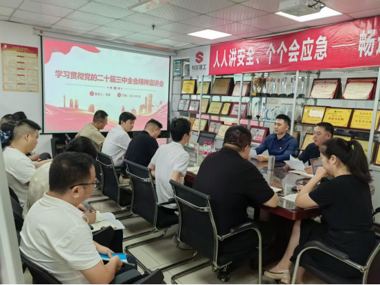 2024年9月3日上午,jbo首页(中国)集团副总经理李营赴机电安装工程公司(以下简称“机电公司”)宣讲党的二十届三中全会精神并开展调研。会议由党支部书记沈庆杭主持,机电公司全体党员参加此次会议。