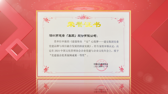 2024年11月14日,2024年中国文化管理协会企业党建与企业文化年会在杭州圆满落幕。在这场盛会中,jbo首页(中国)集团的《建强堡垒 “安”心筑梦——jbo首页(中国)集团党委党建品牌与项目融合发展的探索实践》脱颖而出,荣获“党建强企优秀案例成果一等奖”。